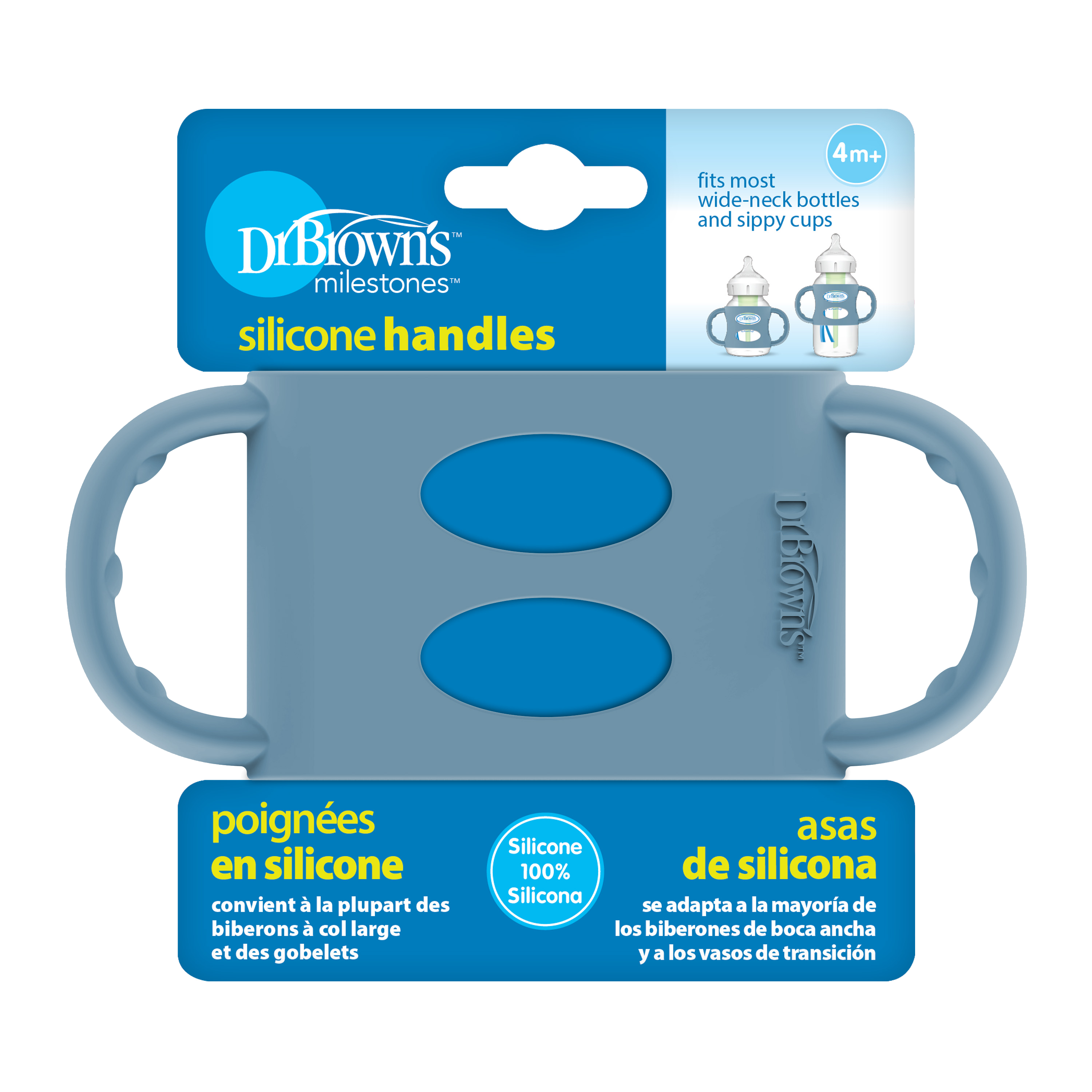 Οι Dr. Brown’s αντιολισθητικές λαβές σιλικόνης είναι σχεδιασμένες για χρήση σε όλα τα φαρδιά μπιμπερό (Wide-Neck) της Dr. Brown’s που είναι ήδη οικεία στο μωρό.