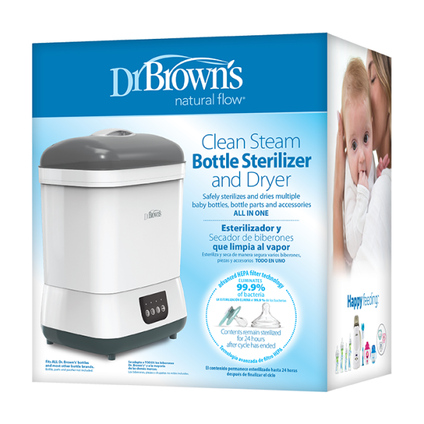 Περιλαμβάνει δοχείο μέτρησης και σχάρα για αξεσουάρ. Συμβατό με όλα τα μπιμπερό Dr Brown’s™ και τις περισσότερες μάρκες μπιμπερό.