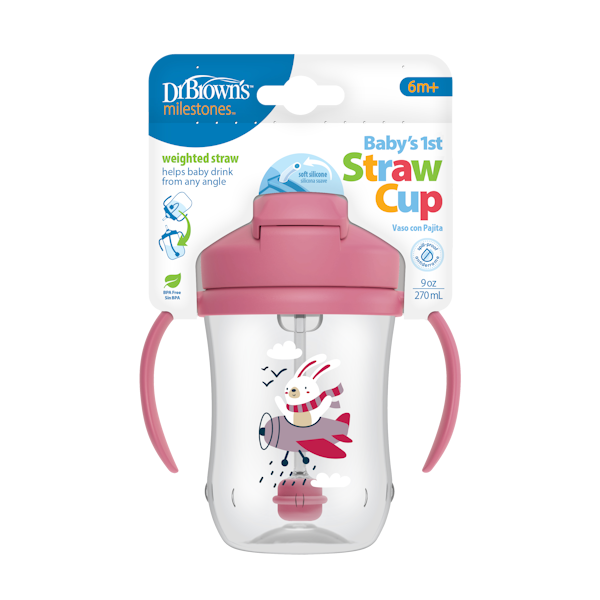 Πρακτικό κύπελλο υγρών με καλαμάκι, κατάλληλο για μωρά από 6 μηνών και άνω.
