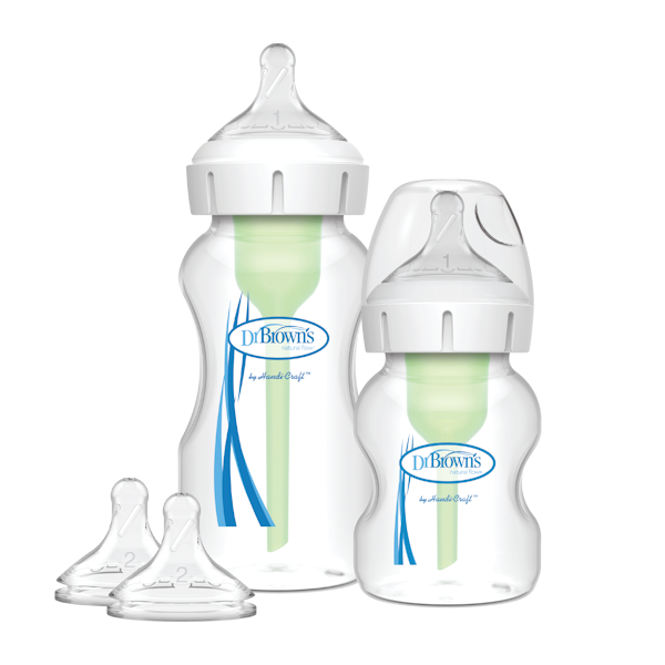 Εργονομικά σχεδιασμένο μπιμπερό με φαρδύ λαιμό, που μέσω της καινοτομίας της διέλευσης του αέρα εξασφαλίζει μοναδικά πλεονεκτήματα στο τάισμα τώρα αποκλειστικά σε μοναδικά σετ δώρου.