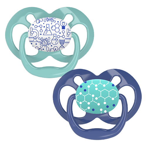 Οι ορθοδοντικές πιπίλες Dr. Brown’s™ διατίθενται σε μεγάλη ποικιλία χρωμάτων και σχεδίων, σε συσκευασία των 2 τεμαχίων.