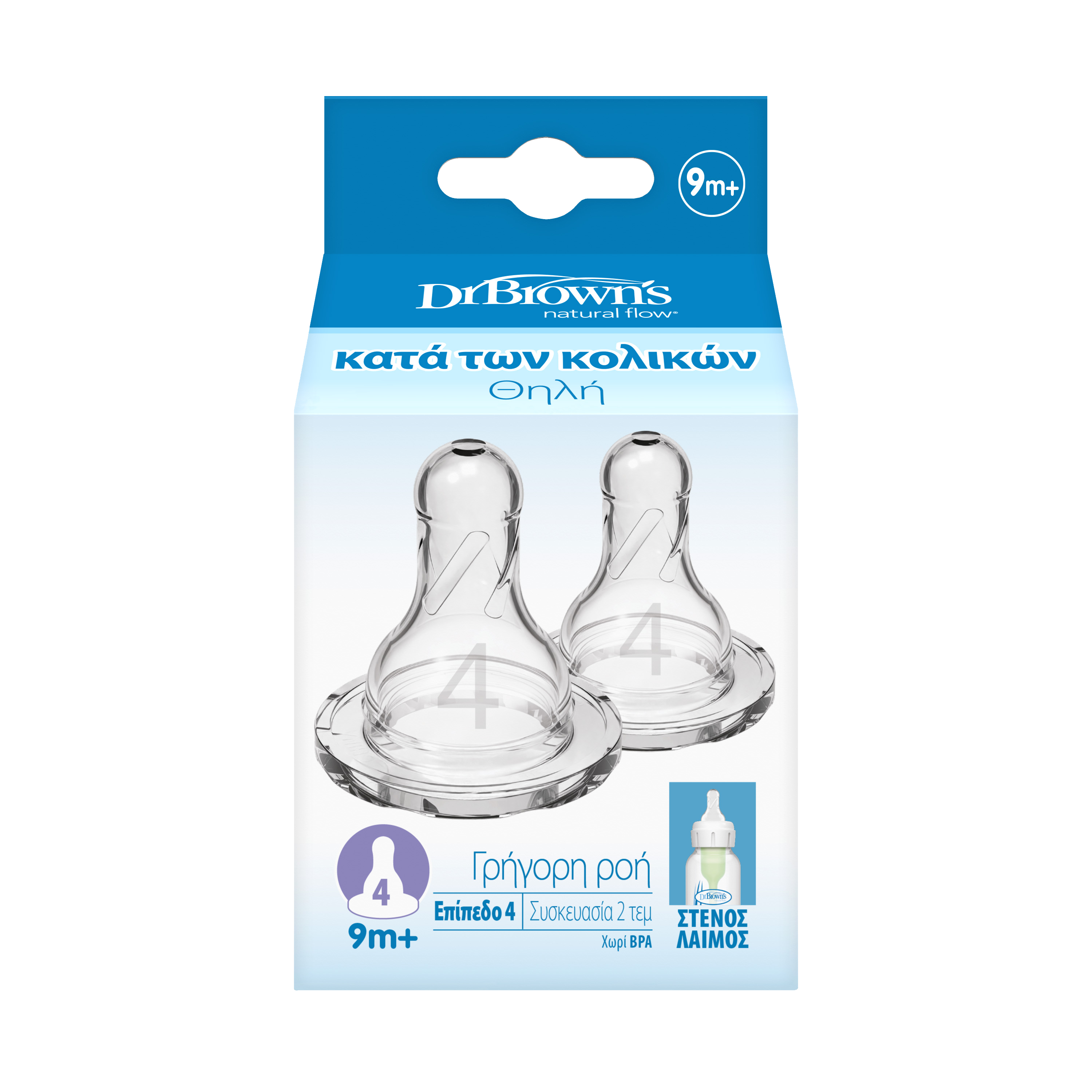 Προηγμένης τεχνογνωσίας θηλές, ειδικά σχεδιασμένες για τα μπιμπερό φυσικής ροής Dr. Brown’s OPTIONS με φαρδύ λαιμό.